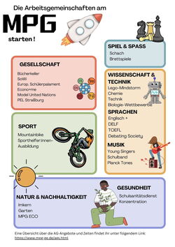 Am Max-Planck-Gymnasium bieten wir eine vielfältige Auswahl an außerschulischen Aktivitäten, die das Lernen ergänzen und die persönliche Entwicklung unserer Schüler:innen fördern. Unsere Lehrer:innen und engagierte Eltern leiten verschiedene Arbeitsgemeinschaften in musischen, sprachlichen, naturwissenschaftlichen und sportlichen Bereichen außerhalb des regulären Unterrichts.
